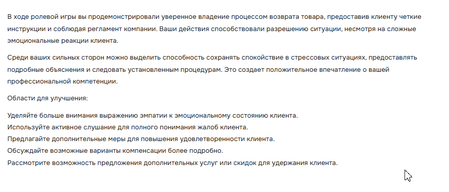 После прохождения ролевой игры вы получаете автоматически сформированный отчет с обратной связью.