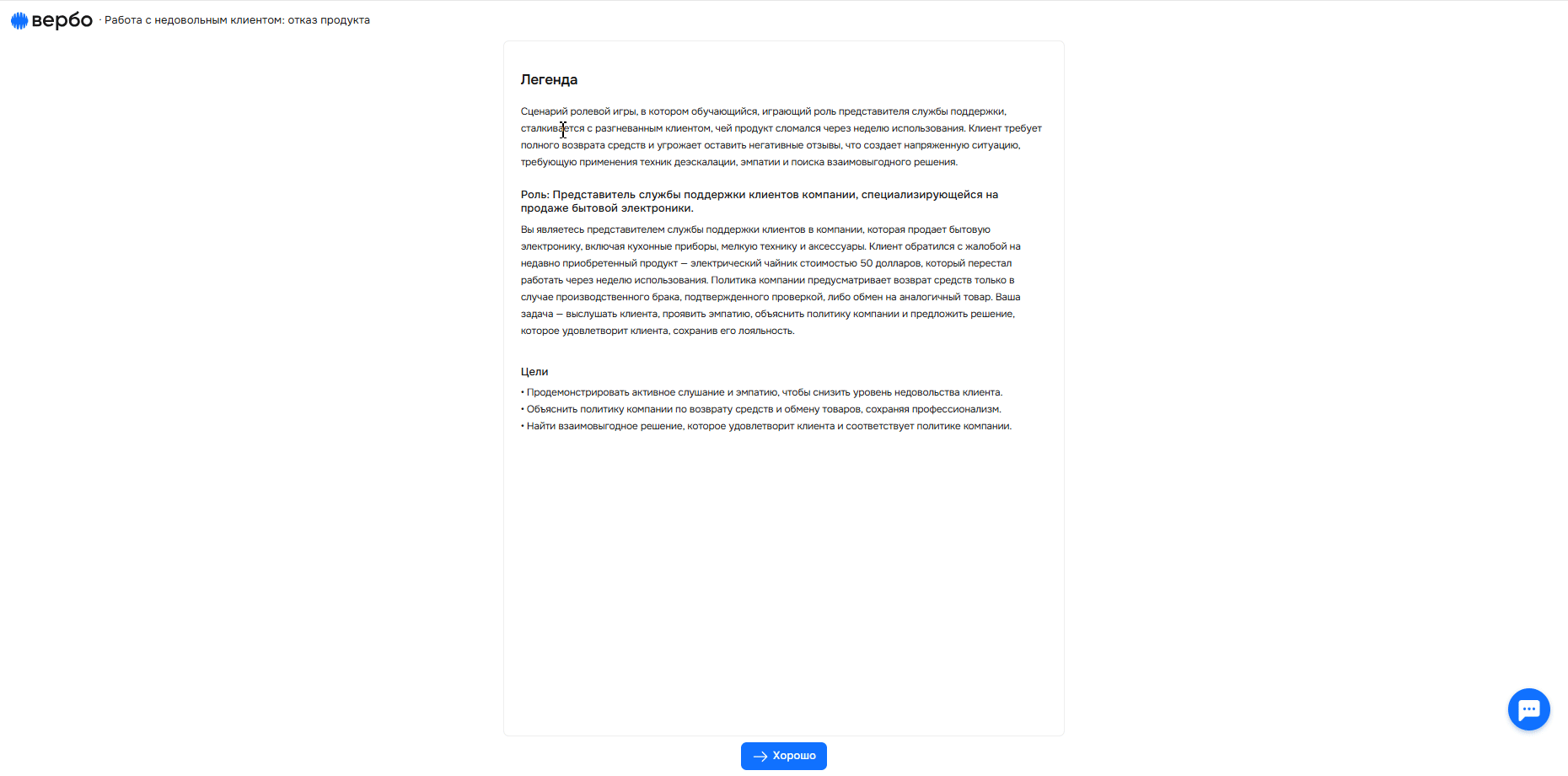 После того как вы ознакомитесь с информацией, нажмите на кнопку «Хорошо» — вы перейдете к ролевой игре.