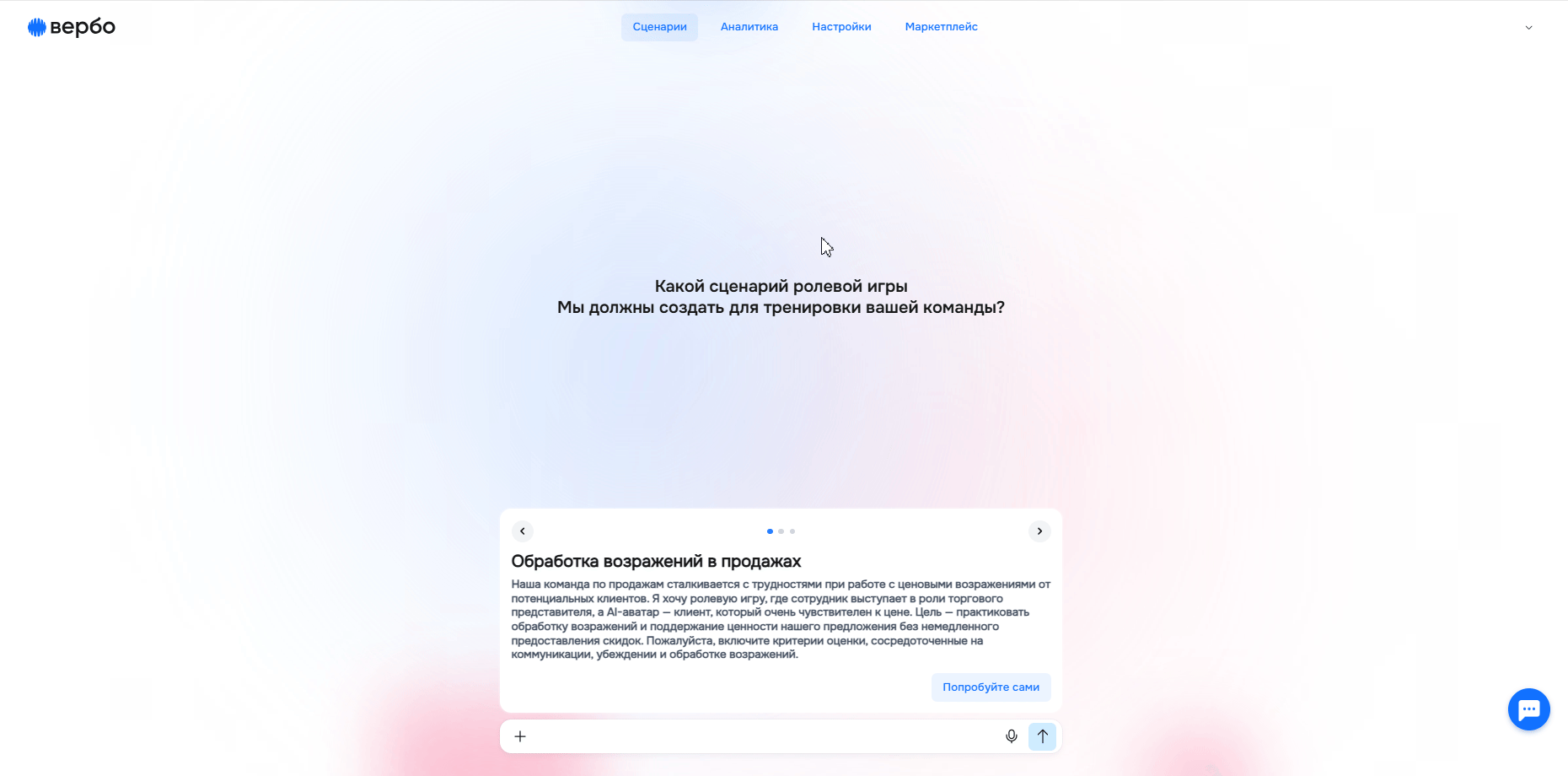 Попробуйте сделать первый сценарий — прописать роли, придумать сюжет и доработать его с помощью ИИ. После этого протестировать его.